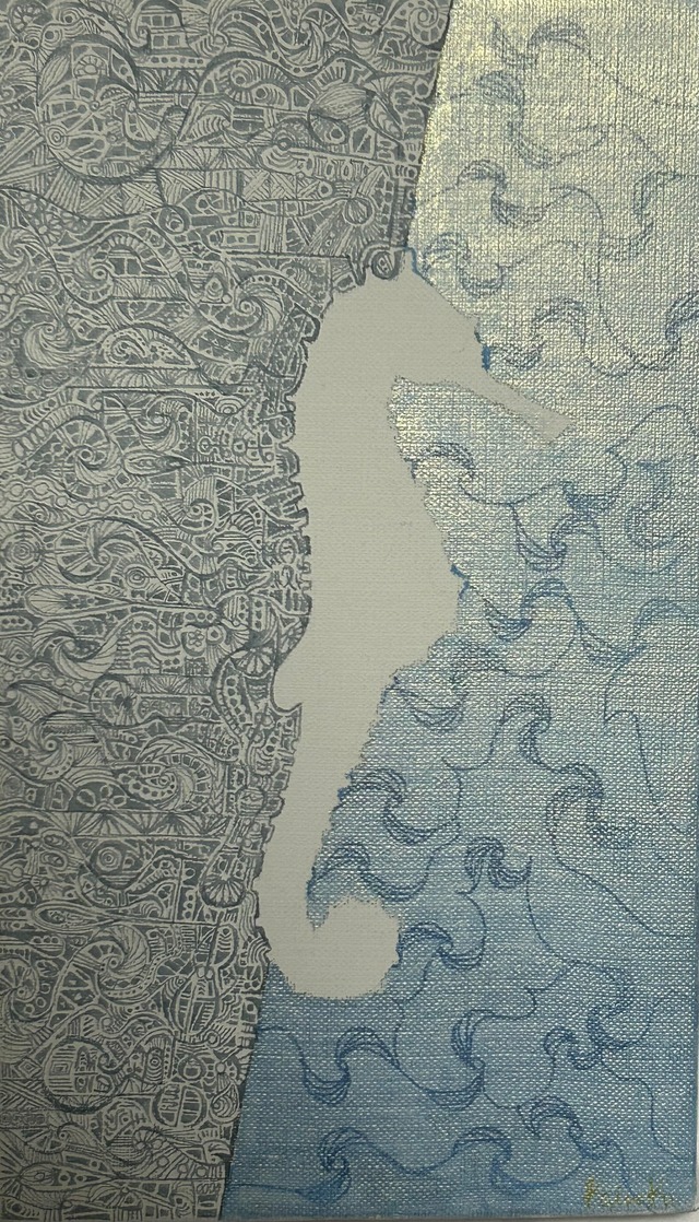 M3サイズ(縦 273mm×横 160mm)のキャンバスに、偏光水彩絵の具と、ペンで描いたアナログ絵のミクスドメディアです。 全て手作業で制作しているので、一点物となります。 題は「落とし子」です。 水の中の暗いところから、明るいところへと移ろうタツノオトシゴを描きました。 人は、誰しもが、どこかからどこかへ移ろう最中です。 移ろう先の良し悪し、移ろう速度の遅い速いはあれど、生きている人間はこの絵で体現されていると思います。 あなたがこの絵を見ることによって、心に少しの彩りを得られたら幸いです。